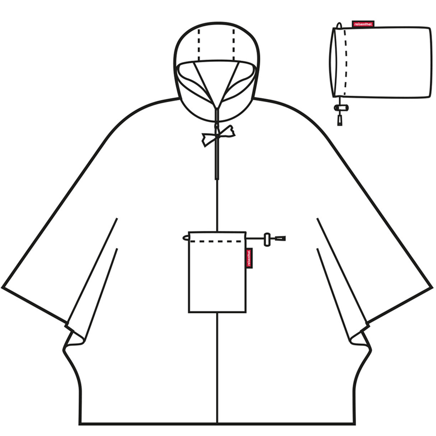 - дождевик компактно сворачивается внутрь собственного внешнего кармана,