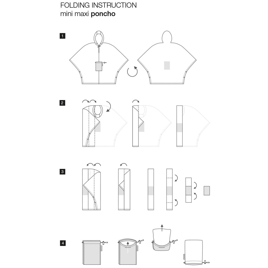 Дизайн дождевика продуман до мелочей: молния на широком воротнике и две кнопки подмышками. Он складывается до размеров внешнего кармана и его можно взять с собой на прогулку, в поход или путешествие. Дождевик создан в варианте one-size и подойдет абсолютно всем. Его можно быстро и легко надеть в любой момент: на это уйдет не больше минуты!